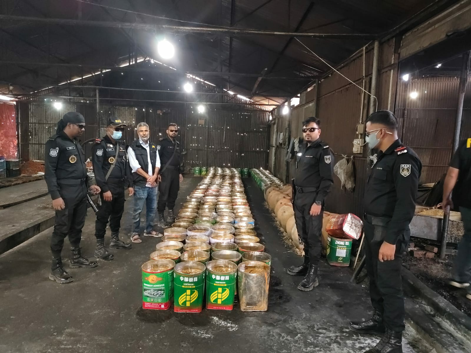 র্যাব সদর দপ্তরের নির্বাহী ম্যাজিস্ট্রেট আবু হাসান বলেন, “এখানে পাওয়া গুড়গুলোর কোনোটিতেই আখ বা খেজুরের রসের সামান্যতম উপস্থিতিও নেই। সবকটিই চিনি, কাপড়ের রং ও বিভিন্ন কেমিক্যাল মিশিয়ে তৈরি করা হয়েছে।”তিনি আরও জানান, অভিযানে জড়িত কারখানাতে প্রতি রাতে প্রায় পনের টনের মতো হয়ে থাকে । এসব ভেজাল গুড় জব্দ করে ধ্বংস করার প্রক্রিয়া চলছে।