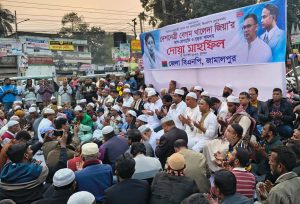 বুধবার (৩ ডিসেম্বর) বিকেলে শহরের ফৌজদারী মোড়ে এ দোয়া মাহফিল অনুষ্ঠিত হয়।