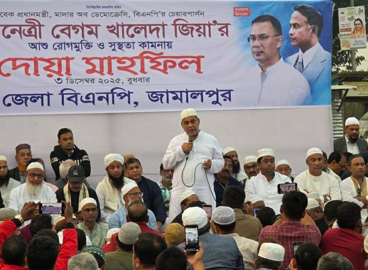 সাবেক প্রধানমন্ত্রী ও বিএনপি চেয়ারপার্সন বেগম খালেদা জিয়ার রোগমুক্তি ও সুস্থ্যতা কামনায় জামালপুরে দোয়া মাহফিল করেছে জেলা বিএনপি।