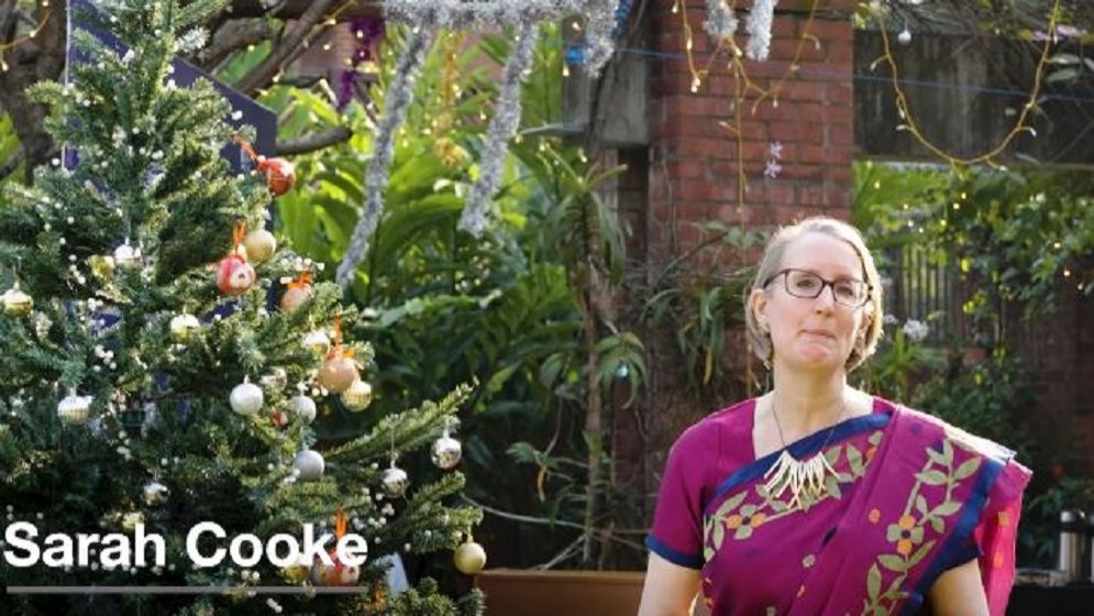 বার্তায় বলা হয়েছে, ব্রিটিশ হাইকমিশনার সারাহ কুক সত্যিকারের বাংলাদেশি স্টাইলে বড়দিন উদযাপন করছেন। তিনি টাঙ্গাইলের তাঁতের শাড়ি পরেছেন, যা সম্প্রতি বাংলাদেশের সাংস্কৃতিক ঐতিহ্য হিসেবে ইউনেস্কোর স্বীকৃতিপ্রাপ্ত।