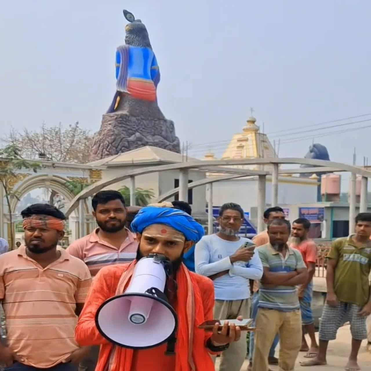পলাশবাড়ীতে মন্দির ও মন্দিরের প্রতিষ্ঠাতা হরিদাসের বিরুদ্ধে মিথ্যাচার অপপ্রচারের প্রতিবাদে মানববন্ধন - jugershanbad