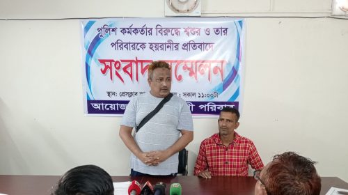 জামালপুরে জামাই পুলিশ কর্মকর্তার বিরুদ্ধে শ্বশুর ও তাঁর পরিবার আত্মীয়-স্বজনকে হয়রানীর অভিযোগ উঠেছে। এ নিয়ে সংবাদ সম্মেলন করেছেন ভুক্তভোগীর পরিবার। শনিবার (০৬ ডিসেম্বর) দুপুরে প্রেসক্লাব জামালপুর মিলানায়তনে এক সংবাদ সম্মেলনে…